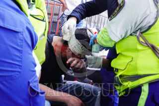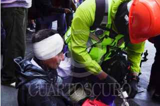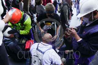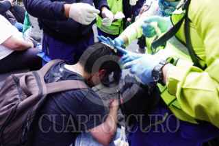 CIUDAD DE MÉXICO, 15NOVIEMBRE2025.- Durante la marcha de la Generación Z, algunos integrantes del llamado bloque negro resultaron heridos luego de que les lanzaron piedras, gas lacrimógeno y gas pimienta. Paramédicos acudieron para brindarles atención en el lugar. FOTO: CAMILA AYALA BENABIB / CUARTOSCURO.COM