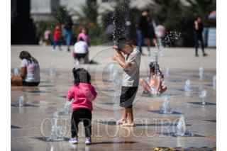 CIUDAD DE MÉXICO, 16NOVIEMBRE2025.- Está tarde se registró un intenso calor lo que provocó visitas al Monumento de los 100 de la revolución y poder disfrutar el agua de las fuentes. FOTO: ANDREA MURCIA /CUARTOSCURO.COM
