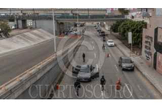 TIJUANA BAJA CALIFORNIA 20NOVIEMBRE2025.-Un hombre de alrededor de 32 años sospechoso de un apuñalamiento en East Village, San Diego, desató una persecución transfronteriza, logrando huir de Estados Unidos en una camioneta Mercedes Benz color gris y cruzar la frontera hacia México por la garita de El Chaparral. De manera extraoficial se informó que, al ingresar a Tijuana, agentes de la Guardia Nacional dispararon en repetidas ocasiones contra el vehículo, tras lo cual el sospechoso fue detenido y trasladado a un hospital con lesiones por disparos de arma de fuego. FOTOS: CHRIS NOYOLA/ CUAROSCURO.COM