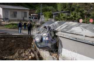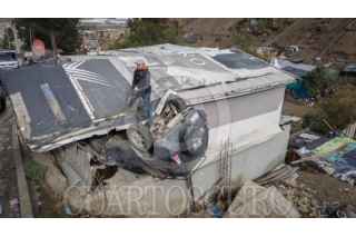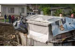 TIJUANA BAJA CALIFORNIA 21NOVIEMBRE2025.- Una camioneta Toyota RAV4 volcó en la avenida Matamoros, de la colonia Rinconada, y terminó dentro de una vivienda. El conductor, de 24 años, salió ileso y señaló que perdió el control tras caer en un bache profundo. La dueña de la casa afectada señaló que escuchó el fuerte impacto y luego encontró el vehículo volcado dentro de uno de los cuartos de la vivienda. FOTOS OMAR MARTÍNEZ/ CUARTOSCURO.COM
