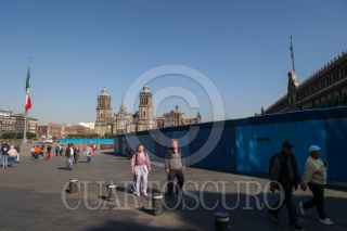 CIUDAD DE MÉXICO, 24NOVIEMBRE2025.- Los negocios que se encuentran ubicados en los arcos del Zócalo, la Catedral Metropolitana, y el Palacio Nacional amanecieron protegidos con vallas esto para evitar ser vandalizados el día de mañana por la marcha de Día Internacional de la Eliminación de la Violencia contra la Mujer. FOTO: MOISÉS PABLO/CUARTOSCURO.COM
