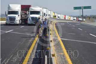 TULA DE ALLENDE, HIDALGO, 24NOVIEMBRE2025.- Campesinos de la región de Tula y transportistas bloquearon la autopista Arco Norte, a la altura de la caseta Tula I para exigir un precio de garantía de 7 mil 200 pesos por tonelada de maíz, la destitución del secretario de Agricultura federal, Julio Berdegué Sacristán y seguridad en las carreteras, respectivamente. FOTO: FRANCISCO VILLEDA/CUARTOSCURO.COM