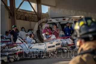 TIJUANA BAJA CALIFORNIA 24NOVIEMBRE2025.- Un conato de incendio se registró en la parte posterior del Hospital Materno Infantil, ubicado en la Tercera Etapa del Río. Bomberos llegaron al lugar y lograron controlar el siniestro generado en el área de los motores de los aires acondicionados que genero una gran cantidad de humo que ingreso al inmueble. Según informó bomberos, se realizó la evacuación de 119 personas, entre ellas 84 trabajadores, 61 pacientes y 9 visitantes, de los cuales cinco pacientes fueron trasladados a otras clínicas del IMSS para continuar con su atención médica. FOTOS CHRIS NOYOLA / CUARTOSCURO.COM