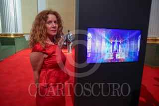 CIUDAD DE MÉXICO, 26NOVIEMBRE2025.- La artista Maria Marshall encabezó un recorrido por su exposición “Invisible”, en el Ex Teresa Arte Actual. La creadora explora el performance, el simbolismo, y experiencias que la han marcado como una maternidad interrumpida. También presentó pinturas y dibujos en gran formato en los cuales pinta sin ver, para mejorar la experiencia extrasensorial, comento durante la explicación que cuando los estaba realizando se imaginaba a personas haciendo el amor. El cuerpo de la obra en su mayoría es generar una experiencia multimedia para el espectador aprovechando las dimensiones del recinto. FOTO: MOISÉS PABLO/CUARTOSCURO.COM