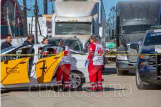 TIJUANA BAJA CALIFORNIA 26NOVIEMBRE2025.-Dos hombres que viajaban a bordo de un taxi del Aeropuerto internacional de Tijuana, fueron atacados a balazos; uno de ellos fue declarado sin vida en el lugar por paramédicos. El hecho ocurrió minutos antes del mediodía sobre la avenida Aeropuerto y bulevar Bellas Artes, en la colonia Garita de Otay. Tras la agresión se realizó un operativo de búsqueda de los responsables, que se extendió hacia los campos deportivos de la colonia Nueva Tijuana. Horas más tarde, la Secretaría de Seguridad y Protección Ciudadana Municipal, informó que tres personas fueron detenidas en relación con estos hechos. FOTOS MIGUEL MONTALVO / CUARTOSCURO.COM