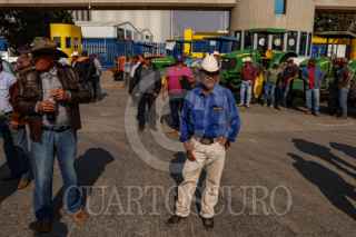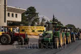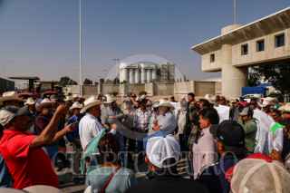 CALERA, ZACATECAS, 27NOVIEMBRE2025.- Productores agrícolas locales y concesionarios de pozos de agua en el estado; quienes forman parte del Frente Nacional de Lucha por el Campo, se manifestaron en las puertas de la planta de la Cervecera Corona, del Grupo Modelo, para demandar sean atendidos y tomados en cuenta en las discusiones dela Reforma a la Ley de Aguas Nacionales, que pretende regularizar las concesiones de agua en el país. Los campesinos informaron que dicha reforma pretende equipararlos a las grandes concesiones de agua que tiene empresas extranjeras, como la belga AB InBev, propietaria de Modelo y quien produce 22 millones de latas-botellas de cerveza diarias, con un consumo anual de agua de 20 millones de metros cúbicos. FOTO: ADOLFO VLADIMIR /CUARTOSCURO.COM