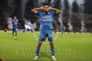 CIUDAD DE MÉXICO, 30NOVIEMBRE2025.- Jeremy Márquez, delantero de Cruz Azul, celebra el gol con el que la Maquina Cementera empataba el encuentro a dos goles. FOTO: DANIEL AUGUSTO/ CUARTOSCURO.COM