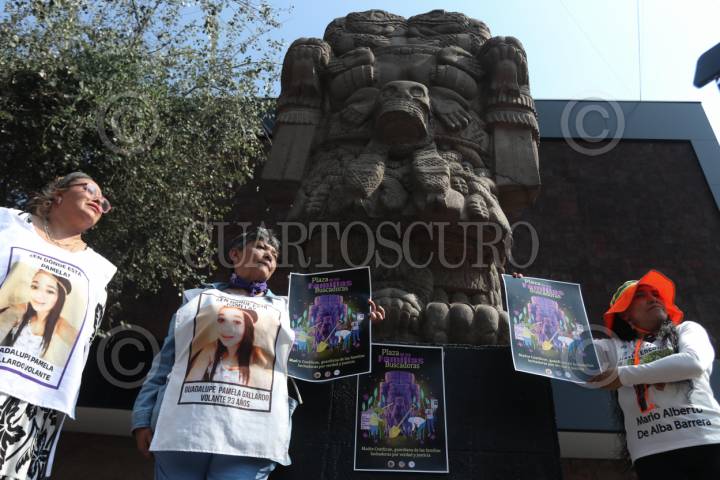 CIUDAD DE MÉXICO, 01DICIEMBRE2025.- María del Carmen Volante acompañada de madres buscadoras exigieron justicia afuera del Centro de Atención Integral para la Búsqueda de Personas. FOTO: GRACIELA LÓPEZ/CUARTOSCURO.COM