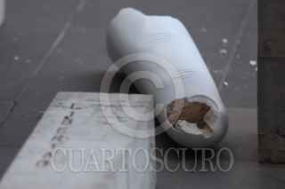 CIUDAD DE MÉXICO, 02DICIEMBRE2025.- Una pieza de Rivelino que estaba expuesta en la Cámara de Diputados, resultó dañada luego de ser derribada. FOTO: DANIEL AUGUSTO/ CUARTOSCURO.COM