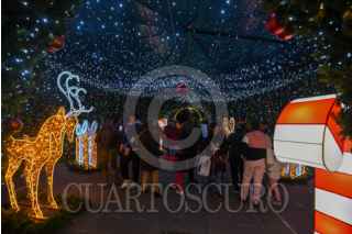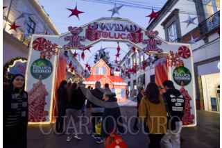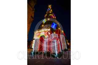 TOLUCA, ESTADO DE MÉXICO, 02DICIEMBRE2025.- La Navidad llegó a Toluca, luces y diversos adornos como un nacimiento, estrellas, un oso gigante en un puente, una casita, y el árbol monumental instalado a un costado de la Catedral, son disfrutados por los visitantes a la capital mexiquense. FOTO: CRISANTA ESPINOSA AGUILAR/CUARTOSCURO.COM