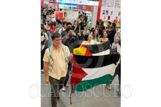 GUADALAJARA, JALISCO, 03DICIEMBRE2025.- A la voz de “No es una guerra, es un genocidio”, “Israel está matando, a niños inocentes”, y “lo que hacen en Gaza, lo harán en tu casa”, integrantes y simpatizantes del Comité de Solidaridad por Palestina realizaron una marcha por las instalaciones de la Feria Internacional del Libro, para pedir el rompimiento de relaciones con Israel y solicitar que Palestina sea el país invitado de la FIL en alguna próxima edición. FOTO: ANA LUISA ANZA/CUARTOSCURO.COM