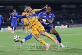CIUDAD DE MÉXICO, 03DICIEMBRE2025.- Gabriel Fernández, delantero de Cruz Azul, festeja el gol con el que empató el encuentro de las semifinales de ida contra Tigres. FOTO: DANIEL AUGUSTO/ CUARTOSCURO.COM