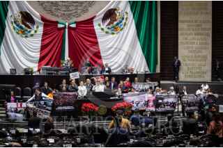 CIUDAD DE MÉXICO, 04DICIEMBRE2025.- Ricardo Monreal, coordinador del grupo parlamentario Morena y Rubén Moreira Valdez coordinador del grupo parlamentario PRI durante sesión ordinaria en la cámara de diputados donde se discute las reservas sobre la Ley general del agua. FOTO: ANDREA MURCIA /CUARTOSCURO.COM