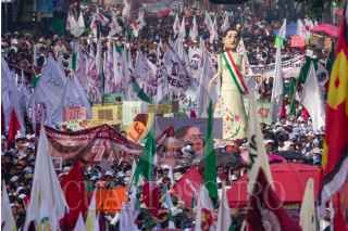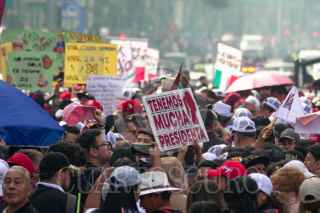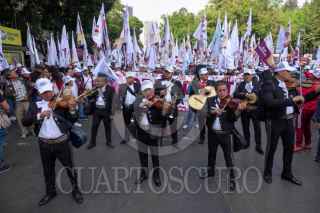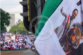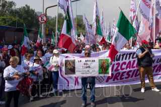CIUDAD DE MÉXICO, 06DICIEMBRE2025.- Cientos de simpatizantes del partido Morena, avanzaron del Ángel de la Independencia al Zócalo capitalino en la llamada Marcha del Tigre, esto por el festejo de los 7 años de la denominada Cuarta Transformación. FOTO: ROGELIO MORALES /CUARTOSCURO.COM