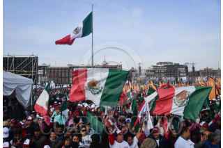 CIUDAD DE MÉXICO, 06DICIEMBRE2025.- Simpatizantes se dieron cita en el zócalo capitalino donde Claudia Sheinbaum, presidenta de México, encabezó un mensaje por los "7 años de transformación", evento que conmemora la llegada al gobierno federal de la coalición conformada por Morena, PT y PVEM. FOTO: MARIO JASSO/CUARTOSCURO.COM