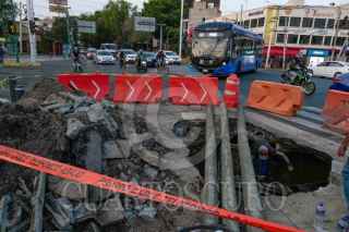 CIUDAD DE MÉXICO, 09DICIEMBRE2025.- Se formó un socavón de almenos cuatro metros de diámetro y 3 de profundidad en el cruce de las Avenidas Miguel Ángel de Quevedo y División del Norte. FOTO: ROGELIO MORALES /CUARTOSCURO.COM