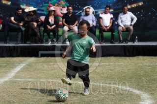 CIUDAD DE MÉXICO, 11DICIEMBRE2025.-Jugadores del Equipo de ciegos de la Ciudad de México caminaron previo a una cascarita durante una de las actividades de la campaña “Un mundial social con juego limpio y sociedad justa” en el Deportivo Hacienda. FOTO: GRACIELA LÓPEZ/CUARTOSCURO.COM