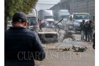LERMA, ESTADO DE MÉXICO, 11DICIEMBRE2025.- Un automóvil que transportaba pirotecnia explotó en la lateral de la carretera México-Toluca, a la entrada del municipio de Lerma, se reportaron 3 personas lesionadas las cuales fueron atendidas por los servicios de urgencias, la zona quedó cerrada a la circulación. FOTO: CRISANTA ESPINOSA AGUILAR/CUARTOSCURO.COM
