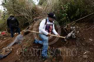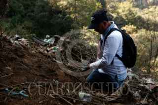 SAN JUAN DEL RÍO, QUERETARO, 12DICIEMBRE2025.- El colectivo Desparecidos Querétaro junto con distintas dependencias de los tres niveles de gobierno llevó a cabo una jornada de búsqueda en la Barranca Concheros en el municipio de San Juan del Río. En días pasados, el colectivo encontró lo que parece ser una costilla humana la cuál fue entregada a elementos de la fiscalía general de la República para su análisis forense. FOTO CÉSAR GÓMEZ/CUARTOSCURO.COM