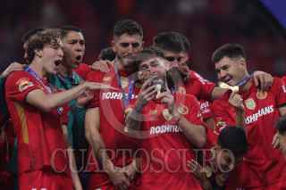 TOLUCA, ESTADO DE MÉXICO, 14DICIEMBRE2025.- El Deportivo Toluca se consagra Bicampeón del futbol mexicano tras derrotar a Tigres en el Estadio Nemesio Diez. Jugadores de Toluca festejan. FOTO: EDGAR NEGRETE LIRA/CUARTOSCURO.COM