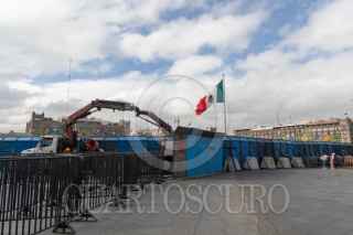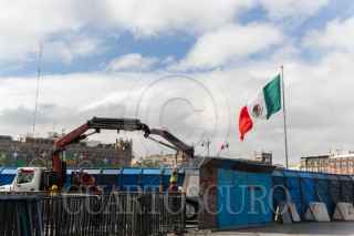 CIUDAD DE MÉXICO, 15DICIEMBRE2025.- Trabajadores del gobierno capitalino retiran los bloques de cemento que instalaron para reforzar las valles que colocaron alrededor de Palacio Nacional, esto ante la marcha de la Generación Z que se realizó el día de ayer. FOTO: MOISÉS PABLO/CUARTOSCURO.COM