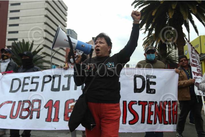 CIUDAD DE MÉXICO, 15DICIEMBRE2025.- Una mujer desalojada del predio de la calle de Cuba 11 exigió justicia durante un marcha en Avenida Juárez ante los despojos y la gentrificación de la crisis que vive el país previo al Mundial de Fútbol en 2026. FOTO: GRACIELA LÓPEZ/CUARTOSCURO.COM