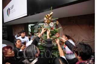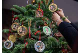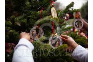 CIUDAD DE MÉXICO, 15DICIEMBRE2025.- Familiares de victimas de desaparición forzada realizaron y colocaron esferas con el rostro de sus seres queridos desaparecidos en el árbol colocado frente al Centro de Atención Integral para la Búsqueda de Personas (CAIBP). FOTO: ANDREA MURCIA /CUARTOSCURO.COM