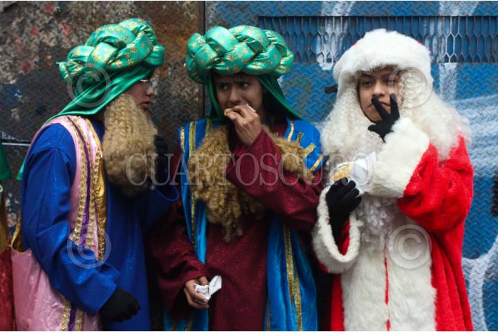 CIUDAD DE MÉXICO, 15DICIEMBRE2025.- Jóvenes disfrazados de Reyes Magos y Santa Claus conversaron en una de las calles del Centro Histórico. FOTO: GRACIELA LÓPEZ/CUARTOSCURO.COM