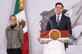 CIUDAD DE MÉXICO, 18DICIEMBRE2025.- Roberto Velasco, encargado de despacho de la Cancillería, durante su participación en la Conferencia del Pueblo de este jueves en Palacio Nacional. FOTO: DANIEL AUGUSTO/ CUARTOSCURO.COM