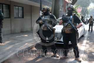 CIUDAD DE MÉXICO, 18DICIEMBRE2025.- Un operativo contra unos presuntos extorsionadores derivó en una balacera, en la calle de Río Ebro, colonia Cuauhtémoc, el saldo fue de seis detenidos y un policía herido. Al lugar arribaron el cuerpo contra la extorsión de la SSC y Guardia Nacional, ahí aseguraron un inmueble, en el que vecinos comentaron que era común ver a hombres en autos de lujo y armados. FOTO: ROGELIO MORALES/CUARTOSCURO.COM