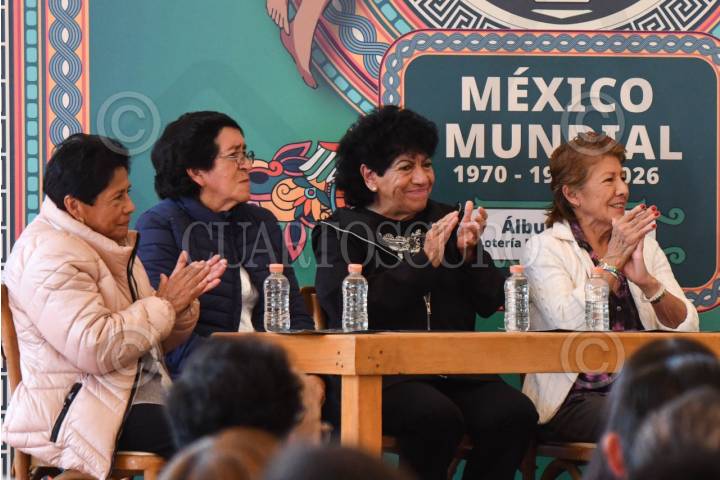 CIUDAD DE MÉXICO, 19DICIEMBRE2025.- Las ex futbolistas de la selección Mexicana de 1971: Maria de la Luz Hernández Montoya; Irma Chávez Barrera; Martha Coronado Díaz y Lourdes de la Rosa, durante la presentación oficial del Álbum y del billete "Retro Lotería Nacional y Futbol" evento realizado en las instalaciones del Centro Social, Cultural y Deportivo Tlalpan. FOTO: MARIO JASSO/CUARTOSCURO.COM