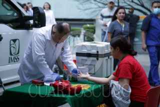 CIUDAD DE MÉXICO, 21DICIEMBRE2025.- Durante 2025 el Banco Central de Sangre del Centro Médico Nacional (CMN) La Raza del Instituto Mexicano del Seguro Social (IMSS) fortaleció el abasto de componentes sanguíneos al realizar 24 jornadas de donación altruista de sangre, que permitió la recolección de más de mil 200 unidades. Con cada donación se obtienen concentrados eritrocitarios, plaquetarios y plasma, lo que representa hasta tres mil 600 componentes destinados a mejorar la calidad de vida y la salud de pacientes en unidades médicas que requieren este vital recurso. FOTO: IMSS/CUARTOSCURO.COM