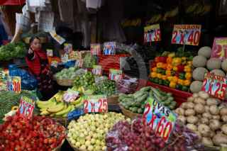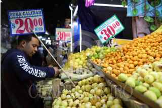 CIUDAD DE MÉXICO, 23DICIEMBRE2025.- Una comerciante señala en su puesto de 2x1 en todas las frutas y verduras en el Mercado de la Merced. FOTO: GRACIELA LÓPEZ/CUARTOSCURO.COM