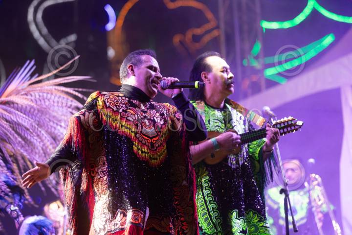 CIUDAD DE MÉXICO, 23DICIEMBRE2025. El grupo Los Askis durante su participación en el escenario principal del festival “Luces de invierno”, en el zócalo capitalino. FOTO: EDGAR NEGRETE LIRA/CUARTOSCURO.COM