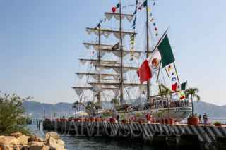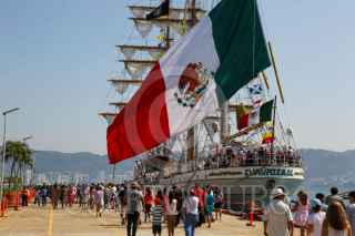 ACAPULCO, GUERRERO, 26DICIEMBRE2025.- El Buque Escuela Cuauhtémoc arribó este día a la Terminal Marítima de Acapulco, para abrir las puertas al público durante este fin de semana. El 17 de mayo de este año el buque se impactó contra el puente de El Puente de Brooklyn en Nueva York, en dónde fallecieron dos cadetes y 20 más resultaron heridos, mientras realizaban maniobras para zarpar. FOTO: CARLOS ALBERTO CARBAJAL/CUARTOSCURO.COM