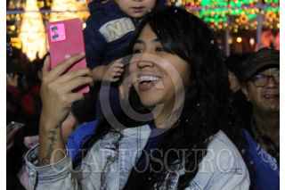 CIUDAD DE MÉXICO, 29 DICIEMBRE 2025.- Asistentes se reúnen en la explanada del Zócalo capitalino durante la última semana del Festival Luces de Invierno. FOTO: GUSTAVO ALBERTO / CUARTOSCURO.COM