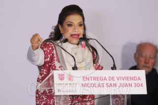 CIUDAD DE MÉXICO, 30DICIEMBRE2025.- Clara Brugada Molina, jefa de gobierno de la Ciudad de México realizó la entrega de vivienda del edificio Nicolás San Juan 394. Está ubicado en la esquina de Nicolás San Juan y La Morena, en la alcaldía Benito Juárez. El edificio fue reconstruido luego por afectaciones del sismo de 2017 con inversión de 69.6 millones de pesos. FOTO: GUSTAVO ALBERTO/CUARTOSCURO.COM