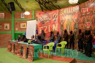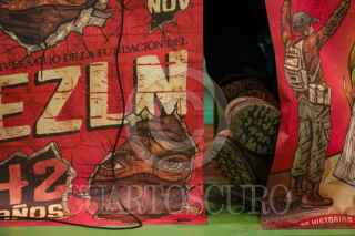 SAN CRISTÓBAL DE LAS CASAS, CHIAPAS, 30DICIEMBRE2025.- El subcomandante Marcos se tomó varias selfies con los asistentes de la cuarta sesión del encuentro "Semillero de Pirámides, de historias, de amores y, claro, desamores", que se realizó en el CIDECI Universidad de la Tierra. FOTO: ISABEL MATEOS HINOJOSA/CUARTOSCURO.COM