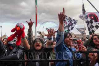 CIUDAD DE MÉXICO, 30DICIEMBRE2025.- Cientos de fanáticos acudieron a la presentación de la banda musical Los Korucos en el Zócalo capitalino, durante el Festival de Luces de Invierno. FOTO: CAMILA AYALA BENABIB / CUARTOSCURO.COM