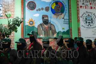 SAN CRISTÓBAL DE LAS CASAS, CHIAPAS, 31DICIEMBRE2025.- Culmina la quinta y última sesión del Encuentro “Semillero de pirámides, de historias, de amores y, claro, desamores”, en el CIDEDI Universidad de la Tierra, con la participación de Raúl Zibechi, el subcomandante Moisés y el capitán Marcos. Al finalizar se entregó a uno de los familiares de los estudiantes de Ayotzinapa, la carta escrita por el subcomandante Moisés a los padres de Ayotzinapa. FOTO: ISABEL MATEOS HINOJOSA/CUARTOSCURO.COM