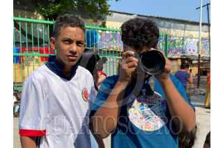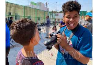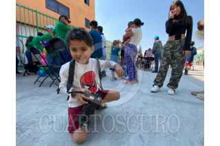 CIUDAD DE MÉXICO, 06ENERO2026.- Un niño migrante, prepara a su modelo para tomarle una fotografía, esto en el campamento migrante de Vallejo. FOTO: ROGELIO MORALES /CUARTOSCURO.COM
