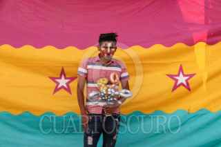 GUADALUPE, ZACATECAS, 09ENERO2026.- “Payasito Soda” posa para la cámara en una feria de la comunidad de Santa Mónica. Oscar, es originario de Veracruz, radicando en el municipio desde hace dos años, se gana la vida recorriendo ferias de rancho ofreciendo figuras con globos para los niños. FOTO: ADOLFO VLADIMIR/CUARTOSCURO.COM