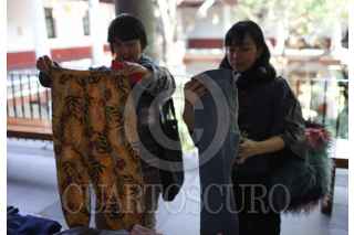 CIUDAD DE MÉXICO, 11ENERO2026.- Durante el Mercado de trueque en el Museo Franz Mayer, mujeres revisan prendas de ropa para truequear en esta actividad que se ofrece por primera vez al público en general. FOTO: GRACIELA LÓPEZ/CUARTOSCURO.COM
