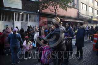 CIUDAD DE MÉXICO, 12ENERO2026.- Pese la alerta de bajas temperaturas, miles de estudiantes de nivel primaria, secundaria y kinder, regresaron hoy a clases presenciales siguiendo el calendario de la Secretaria de Educación Pública (SEP). En la imagen aspecto del regreso a clases en la escuela primaria Fray Pedro de Gante, ubicada en el Centro Histórico. FOTO: ANDREA MURCIA /CUARTOSCURO.COM