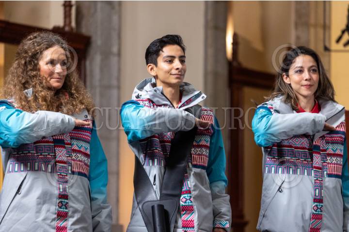 CIUDAD DE MÉXICO, 12ENERO2026.- Sarah Schleper, esquí alpino; Donovan Carrillo, patinaje artístico, y Regina Martínez Lorenzo, esquí de fondo, fueron abanderados por la Presidenta de México, Claudia Sheinbaum, a unos días de su participación en los Juegos Olímpico de Invierno Milano Cortina 2026. FOTO: MOISÉS PABLO/CUARTOSCURO.COM
