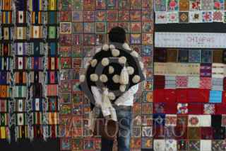 CIUDAD DE MÉXICO, 12ENERO2026.- Joven toma fotografías de las piezas de la “Exposición de bordados y tejidos más grandes del mundo”, la cual recibió el Récord Guinness con una muestra de 3089 piezas de 15 x 15cm con hilos de más de cuatro colores del trabajo de 200 artesanas y artesanos de las 32 entidades del país. La exposición se encuentra en la Cancha de Tenis del Complejo Cultural Los Pinos. FOTO: GRACIELA LÓPEZ /CUARTOSCURO.COM