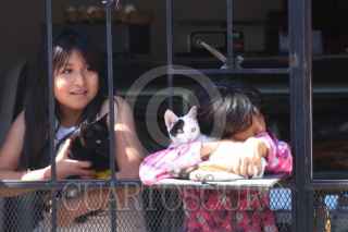 TEPOZTLÁN, MORELOS, 12ENERO2026.- Vida cotidiana en una calle de la comunidad indígena de Santa Catarina, dos niñas cargan a su mascota, detrás de una accesoria de una tienda de abarrotes. FOTO: MARGARITO PÉREZ RETANA/CUARTOSCURO.COM