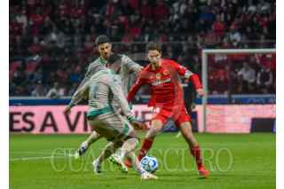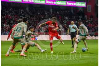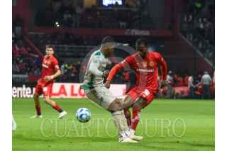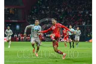 TOLUCA, ESTADO DE MÉXICO, 14ENERO2026.- Marcel Ruiz medio de los Diablos de Toluca pelea el esférico con Carlos Grueso medio de la escuadra de Santos Laguna en el partido correspondiente a la jornada 2 del Torneo Clausura 2026 de la Liga MX, en el estadio Nemesio Diez, con un marcador final de 3-1. FOTO: CRISANTA ESPINOSA AGUILAR/CUARTOSCURO.COM