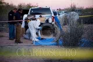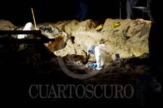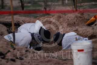 MEXICALI BAJA CALIFORNIA 15ENERO2026.-Una quinta fosa clandestina fue localizada en la colonia Miguel Alemán, en el Valle de Mexicali, durante los trabajos de búsqueda que realizan colectivos de familiares de personas desaparecidas en coordinación con autoridades. Con este hallazgo preliminar, suman al menos 11 cuerpos localizados en la zona, luego de que en fosas anteriores se encontraran diez. Autoridades informaron que la detección se dio tras identificar una remoción irregular de tierra y la confirmación de posibles restos humanos por parte de la unidad K9, por lo que peritos continúan procesando el sitio en un área donde no se descartan nuevos hallazgos. FOTOS JULIETA M. NEVAREZ/CUARTOSCURO.COM