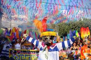 JIUTEPEC, MORELOS, 18ENERO2026.- Décimo sexta edición del Encuentro de Comparsas de Chinelos que marca la temporada de carnavales en el estado. Más de 200 comparsas desfilaron en el centro del municipio, ofreciendo un espectáculo multicolor. FOTO: MARGARITO PÉREZ RETANA/CUARTOSCURO.COM